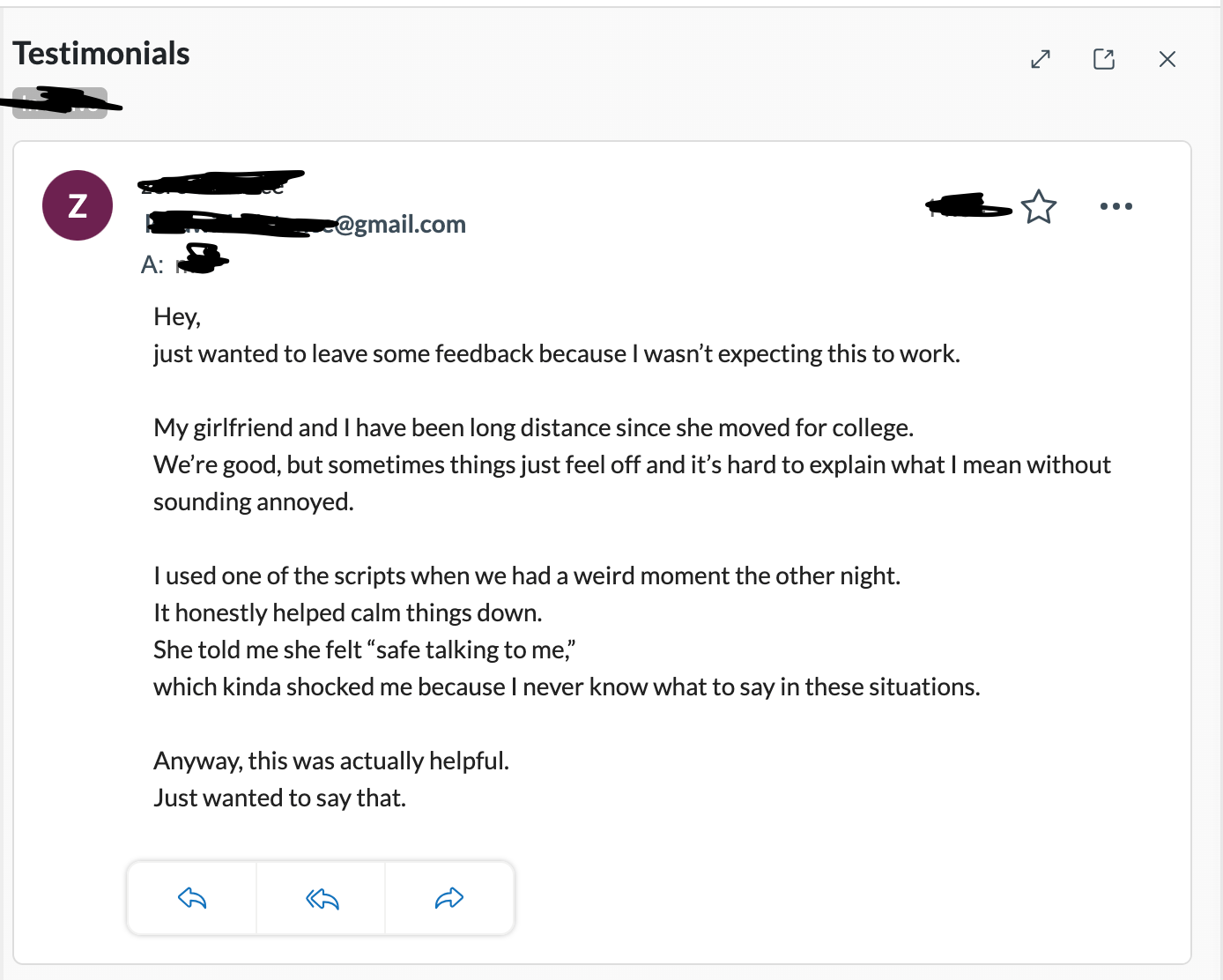 So if you're ready to put in the work: There's essentially zero risk. Either your relationship transforms, or you get detailed feedback on why the strategies didn't work for your unique situation and your money back.